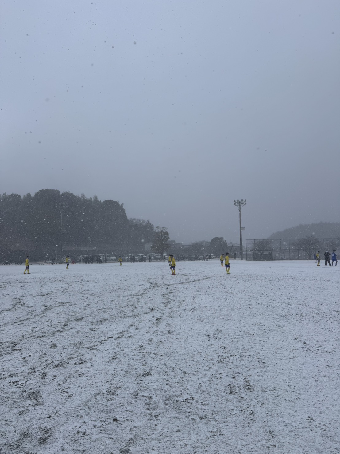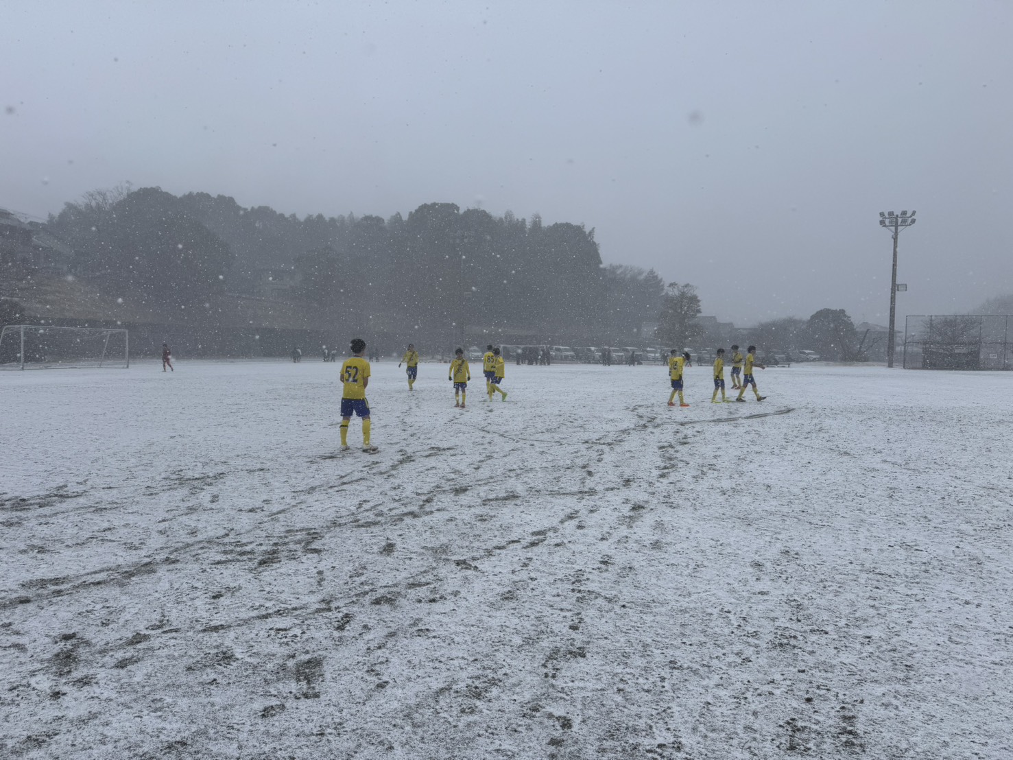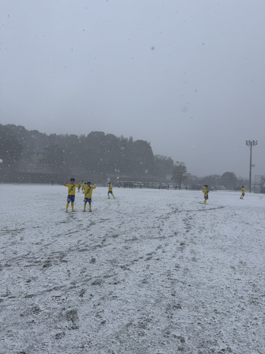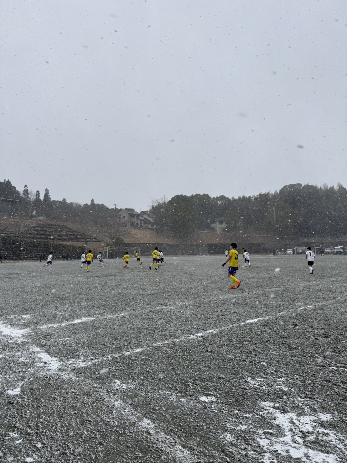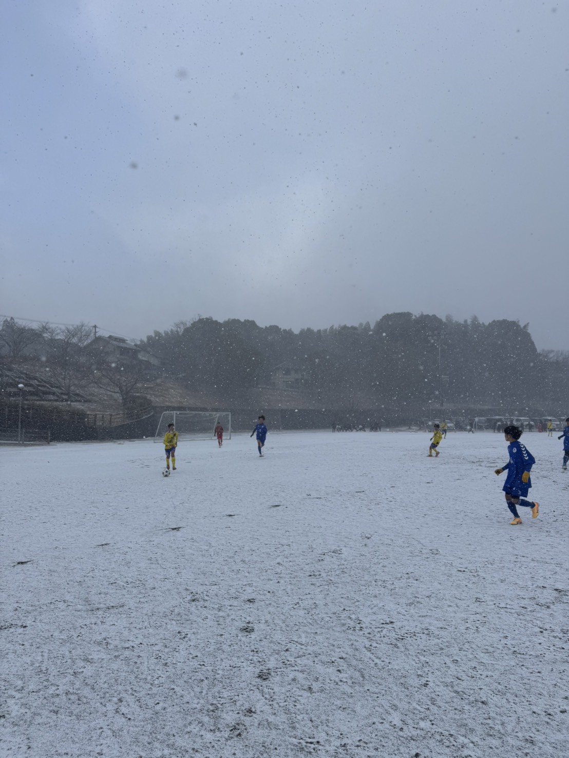 雪が舞う中での試合。